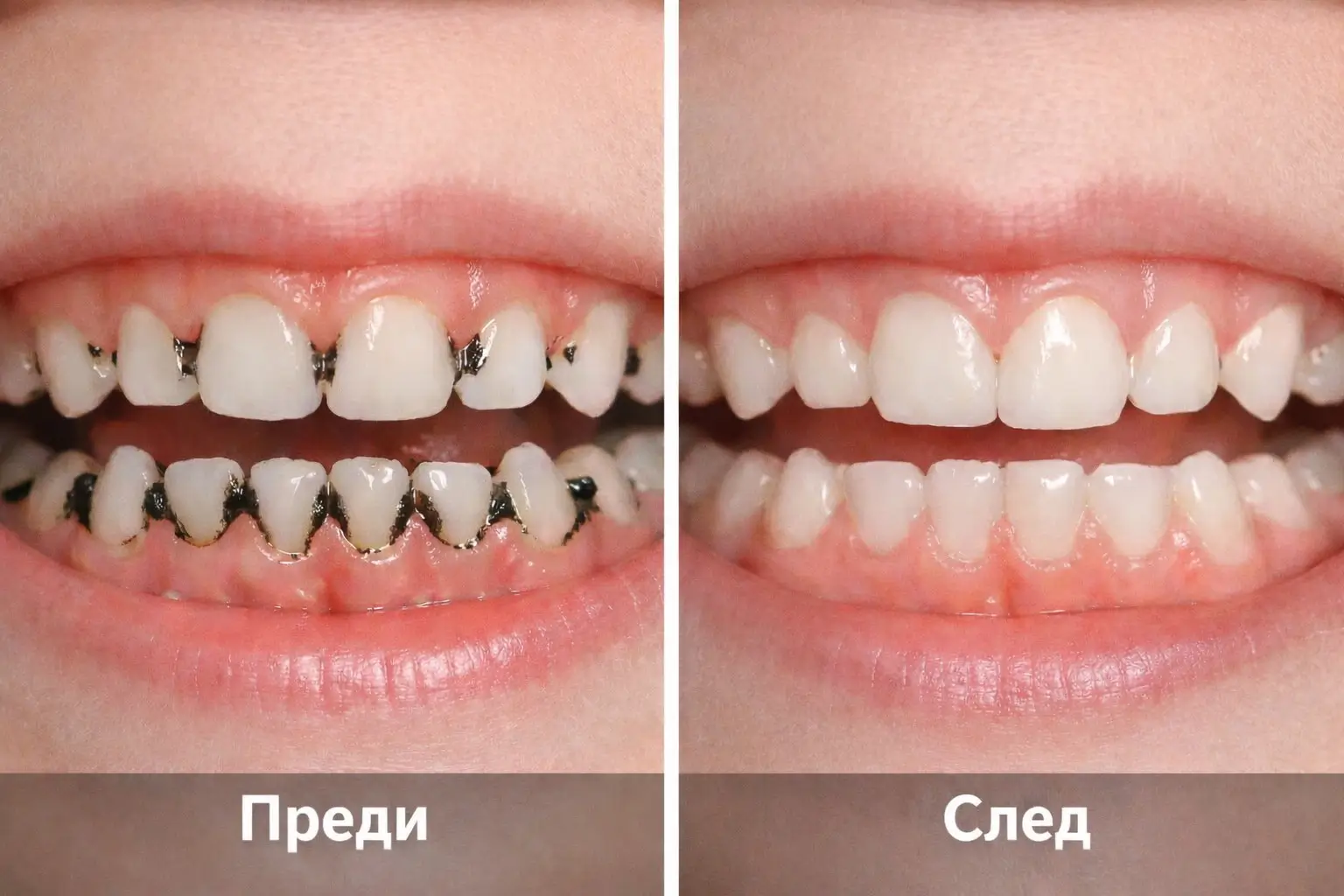 Това не е зъбен камък, не е и кариес. Причината за тези т. нар. черни оцветявания най-често е т.нар. хромогенно оцветяване, което се дължи на наличието на определени бактерии, които произвеждат пигменти. Те се натрупват по повърхността на зъбите и причиняват видими тъмни линии по вътрешните и външните повърхности. Хромогенните бактерии са естествена част от оралната микрофлора и се развиват при определени условия, без да причиняват заболяване. Основните причини за появата на оцветяванията са: генетична предразположеност, състав на слюнката, наличие на определени бактерии, и прекалено дълъг интервал между професионалните почиствания на зъби. При редовните профилактични прегледи ние отстраняваме оцветяванията и даваме указания за грижа у дома.