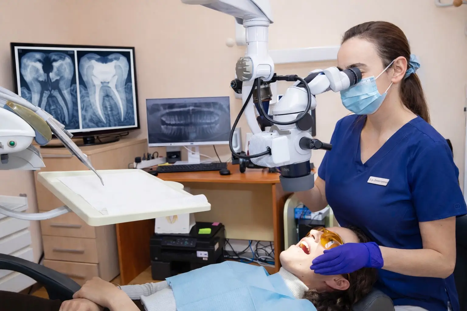 Кореновото (ендодонтско) лечение е стоматологична процедура, при която се лекува увреденият или инфектиран нерв на зъба, за да се спаси зъбът и да се спре болката и инфекцията. То е единствената консервативна (запазваща зъба) алтернатива, когато пулпата (нервът) е необратимо възпалена или инфектирана. Кореновото лечение позволява зъбът да остане в устата, вместо да бъде изваден. В нашата клиника това лечение се извършва под микроскоп, което допълнително гарантира по-висок процент на успеваемост и дълготраен резултат – намалява риска от усложнения и нужда от повторни интервенции.